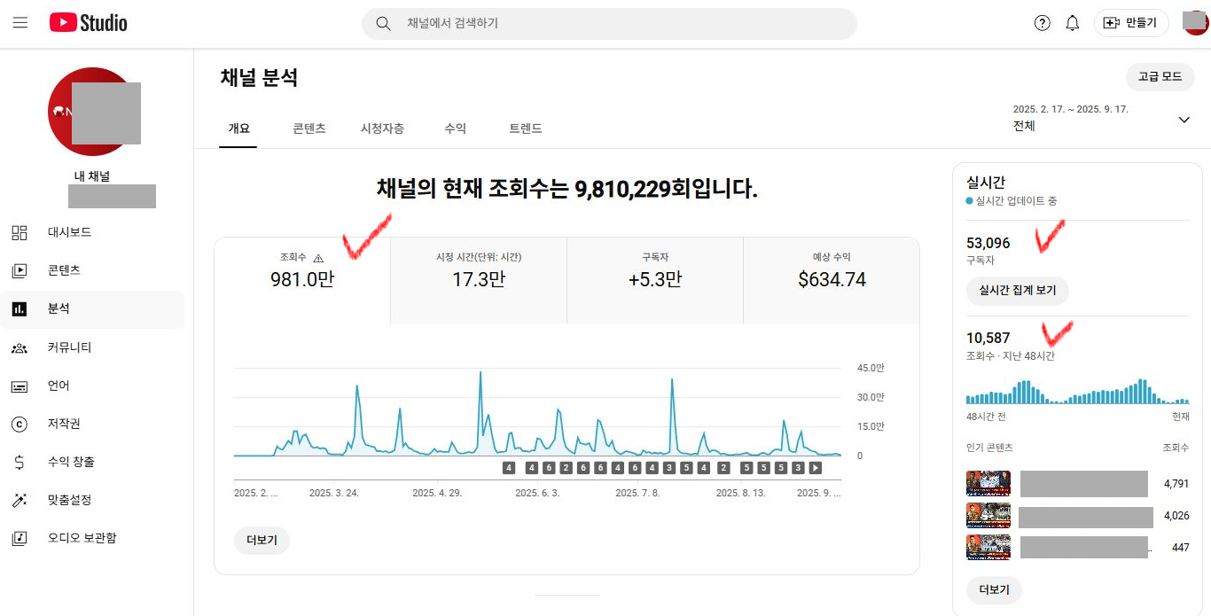 운영기간 동안 146개의 영상을 업로드했으며, 총 조회수는 981만, 구독자 5만 3천명을 달성했습니다. 롱폼 위주로 큰 채널임에도 불구하고 48시간 조회수도 역대급으로 활성화돼있습니다.