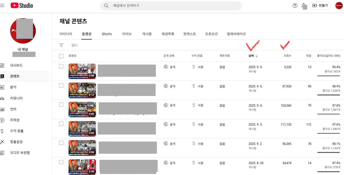 - 조회수가 존재한다면 정상으로 판단하고, 채널 운영 주의사항에 따라 채널명 변경, 영상 비공개/삭제 진행 후 운영을 하시면 됩니다.