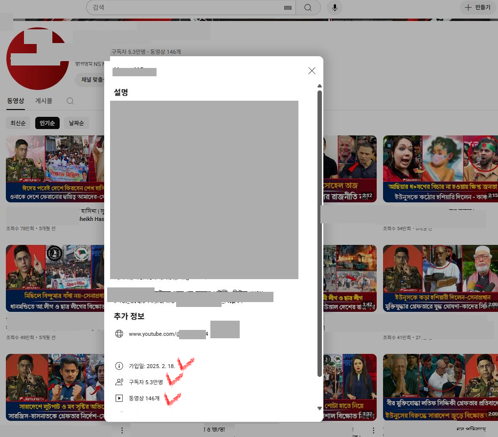 이 채널은 방글라데시의 정치 뉴스와 논평을 다루는 채널입니다. 주로 셰이크 하시나 전 총리와 그녀의 정당을 지지하는 영상을 제작했습니다. 특히, 하시나의 연설, 지지 시위, 시민 인터뷰 등을 편집하여 현 임시정부를 비판하고 아와미 연맹의 정당성을 주장하는 영상으로 큰 인기를 끈 것으로 보입니다.