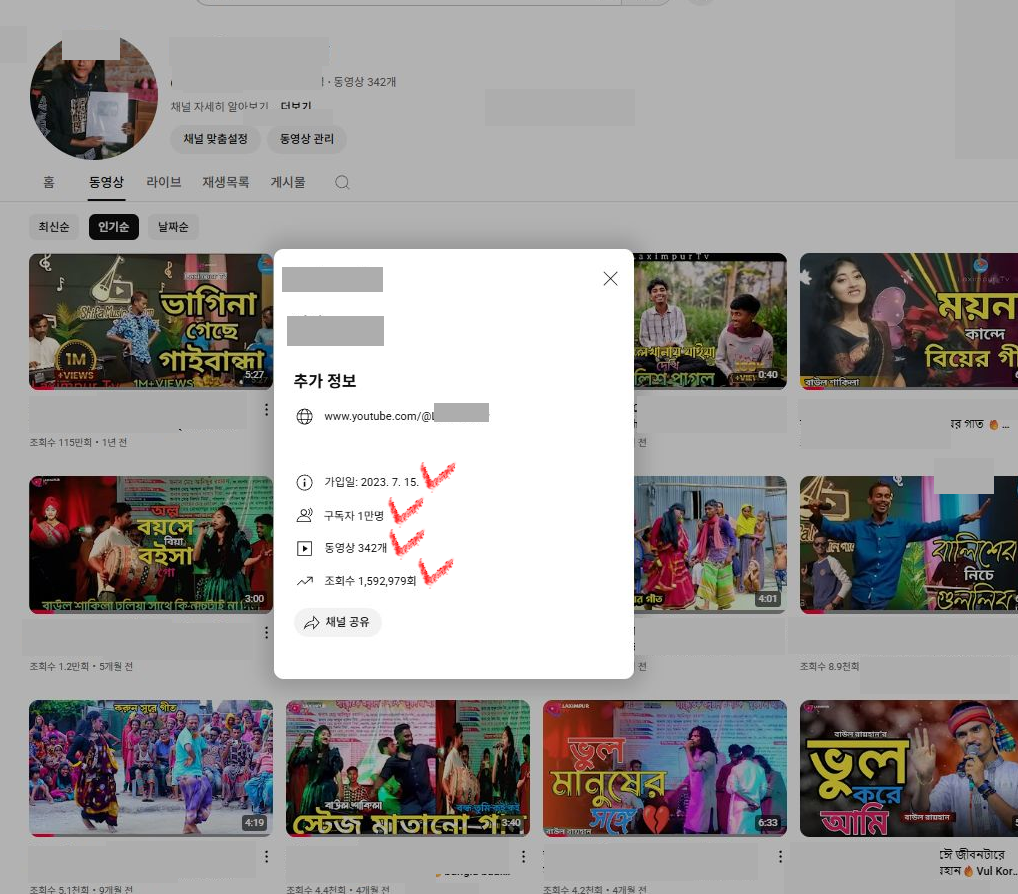 • 조회수가 존재한다면 정상으로 판단하고, 채널 운영 주의사항에 따라 채널명 변경, 영상 비공개/삭제 진행 후 운영을 하시면 됩니다.