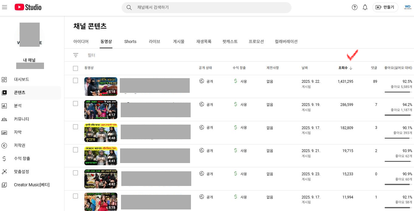- 조회수가 존재한다면 정상으로 판단하고, 채널 운영 주의사항에 따라 채널명 변경, 영상 비공개/삭제 진행 후 운영을 하시면 됩니다.